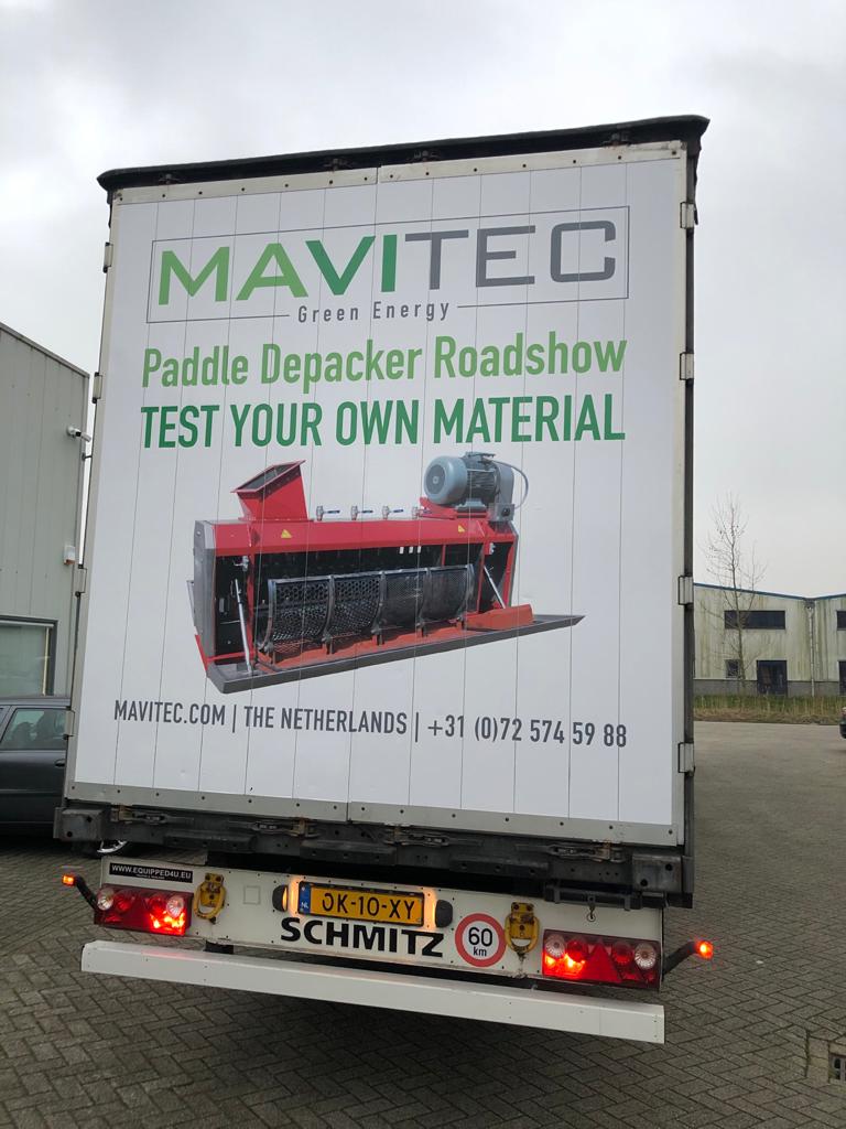 Vanaf volgende maand is onze mobiele testunit te huur: een unieke kans om de Paddle Depacker te zien draaien en je eigen materiaal te testen op je eigen terrein.