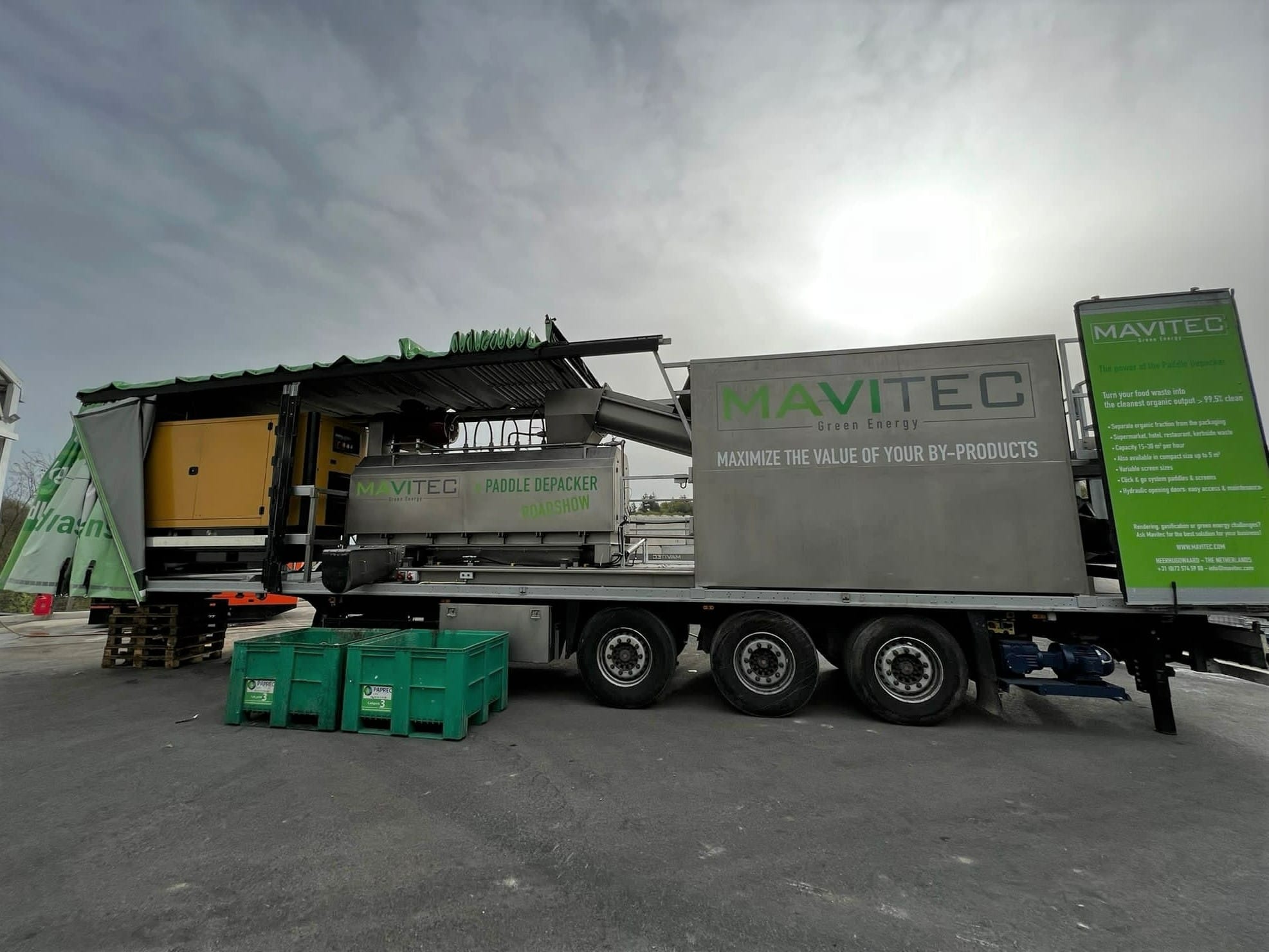 Para acompanhar o sucesso do primeiro Paddle Depacker Roadshow um segundo trailer está pronto para atender mais clientes. Nosso novo Roadshow está agora a caminho pela Europa, pronto para transformar supermercados e outros resíduos orgânicos nas sopas orgânicas mais limpas para uso em instalações de biogás.
